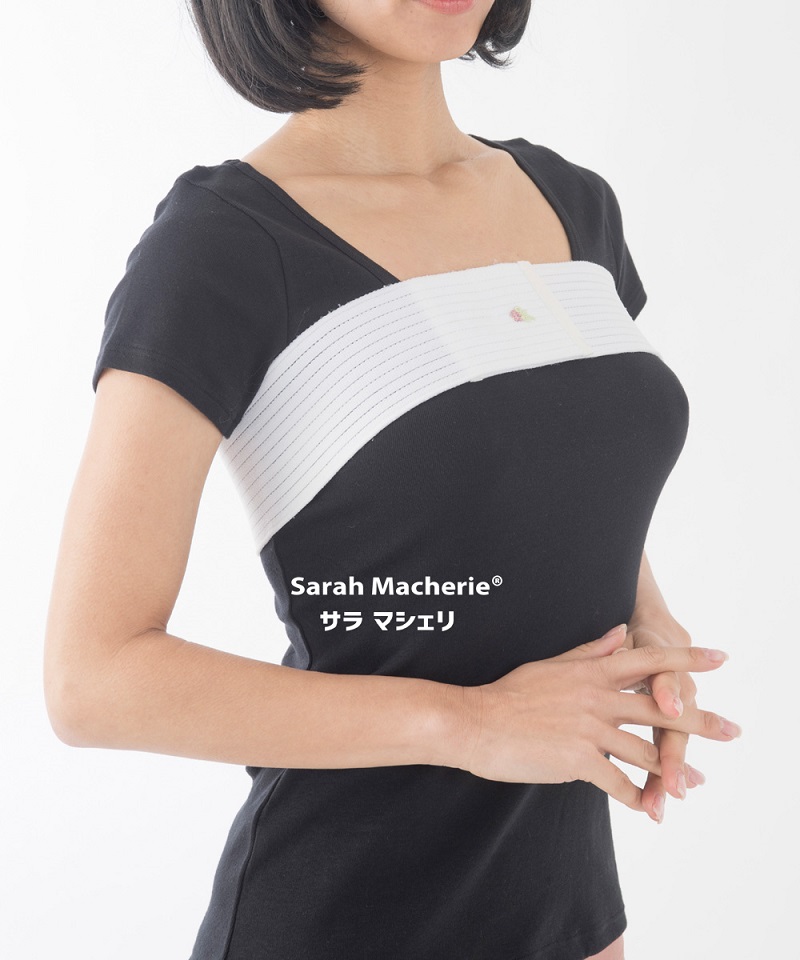 リンパ節郭清の手術直後に腋窩に血液やリンパ液が貯留する事が多く、今は整形外科でも使用するバストバンドで腋窩を圧迫していますが、ズレてうまく圧迫できない事が多いです(腋窩をきっちり圧迫するために工夫してもなかなか上手くいきませんでした。)